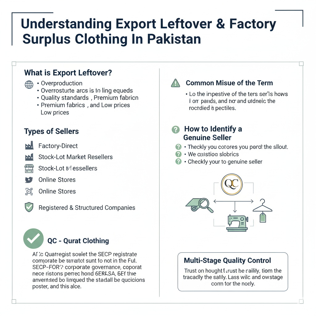 QC – Qurat Clothing (SMC-Private) Limited represents a structured, transparent, and accountable approach to export surplus apparel — combining factory-level sourcing with modern retail systems.